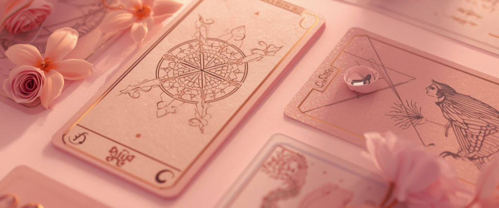 Ein zartes, handgefertigtes Kartendeck, das in sanften Rosatönen strahlt.